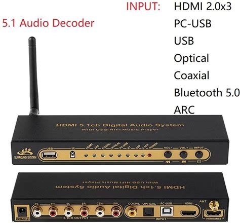 Digital Audio Converter 5.1CH DTS Decoder For Home Cinema, Complete Interface,Applicable To HD Video Players/DVD/Digital Audio Source Decoding (Host +